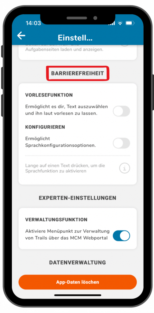 In der App können Trailinformationen und Aufgabenstellungen vorgelesen werden lassen.