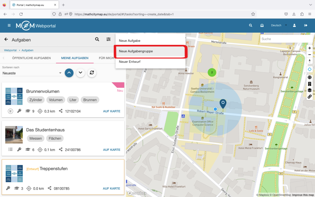 Du wirst dann aufgefordert die erste Aufgabe deiner Aufgabengruppe zu erstellen.