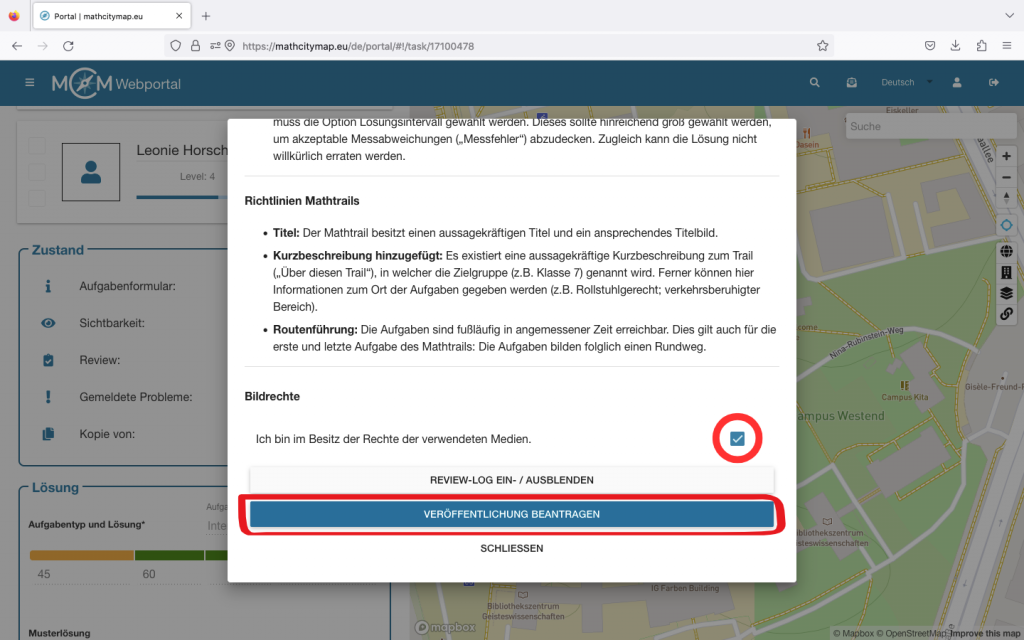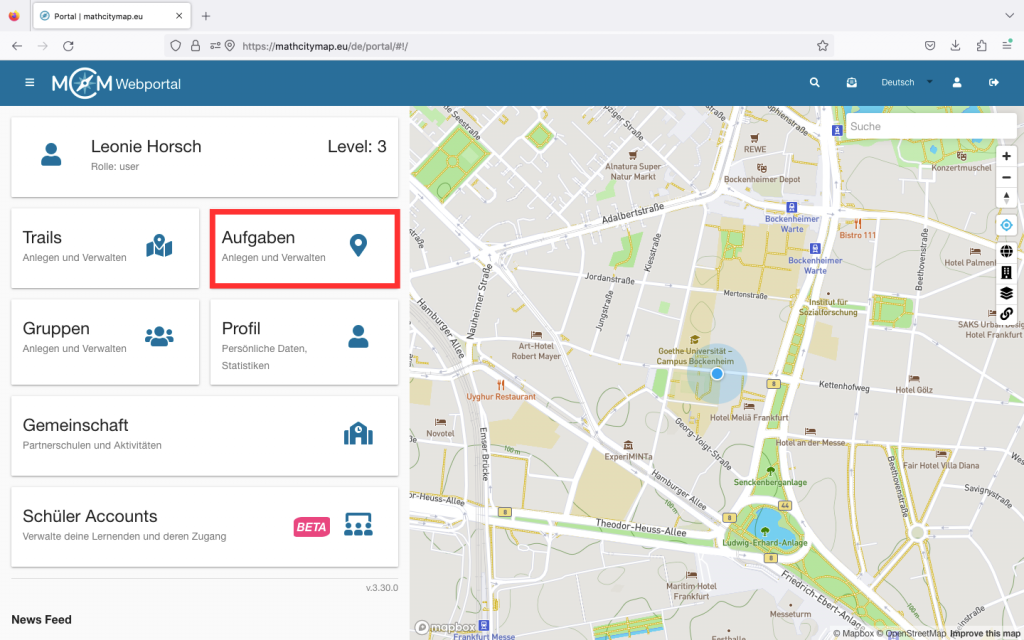 Falls du das MathCityMap Webportal auch über die App nutzen und dadurch deine Trails verwalten möchtest, musst du den Regler bei „Verwaltungsfunktionen“ aktivieren.