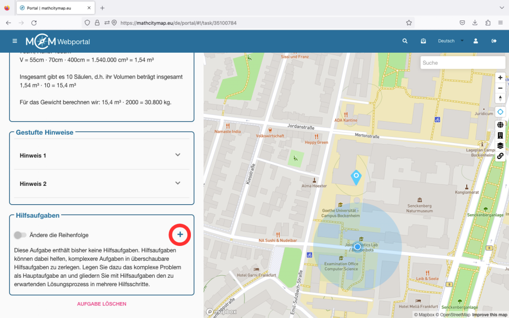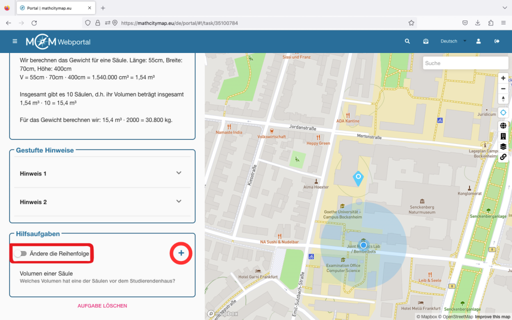 Auch in der App direkt gibt es eine kurze Erklärung zu ihrer Anwendung. Klicke dafür auf das weiße Feld „Wie MathCityMap funktioniert“.