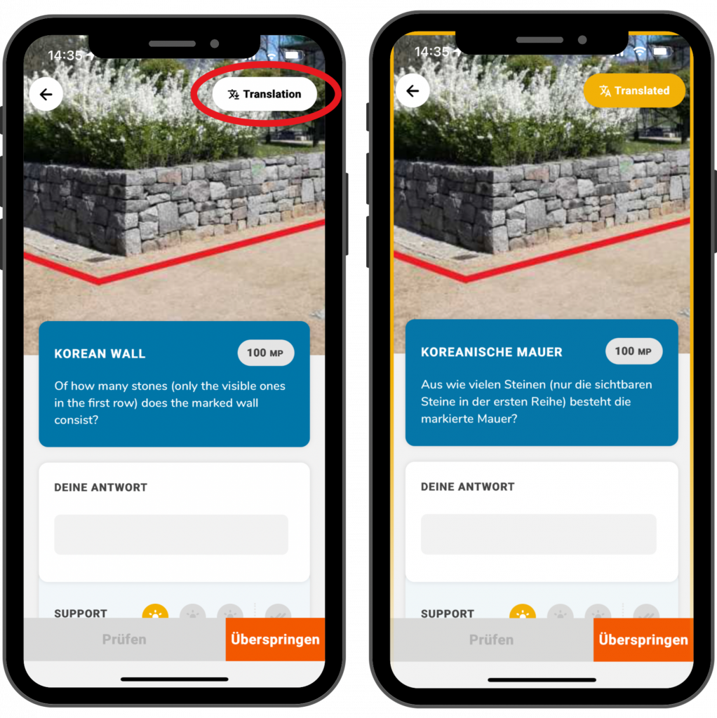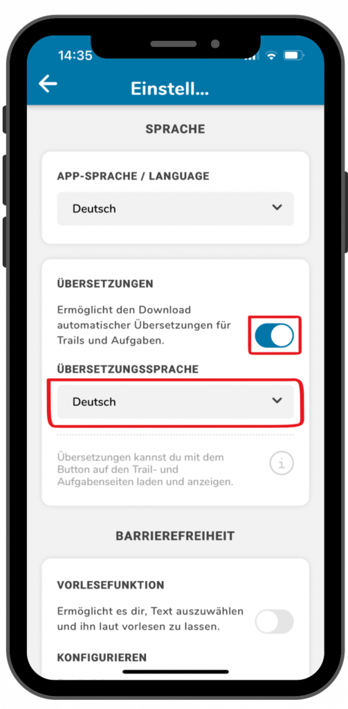 Sobald die Vorlesefunktion aktiviert ist, kannst Du sie in der App nutzen. Das funktioniert bei Trailinformationen und bei Aufgabenstellungen.
