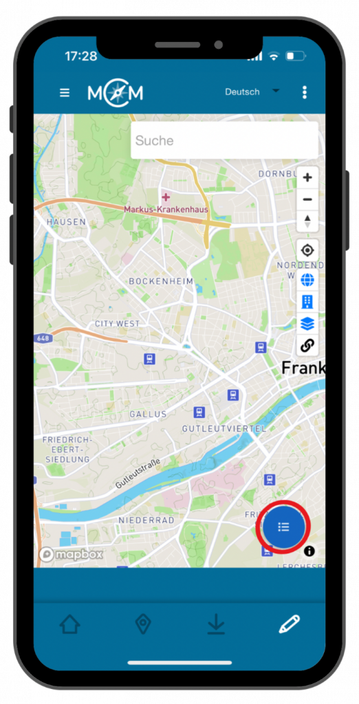 Hier findest du die Menüfelder in Listenform und kannst durch das Klicken auf das Karten-Symbol unten rechts zur Kartenansicht wechseln.
